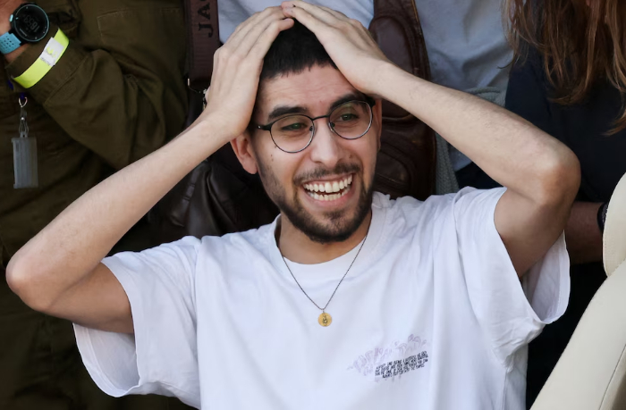 24-летний Эвьятар Давид, также похищенный с фестиваля Nova, прибыл в медицинский центр Рабина-Бейлинсона в Петах-Тикве под крики ликующей толпы.